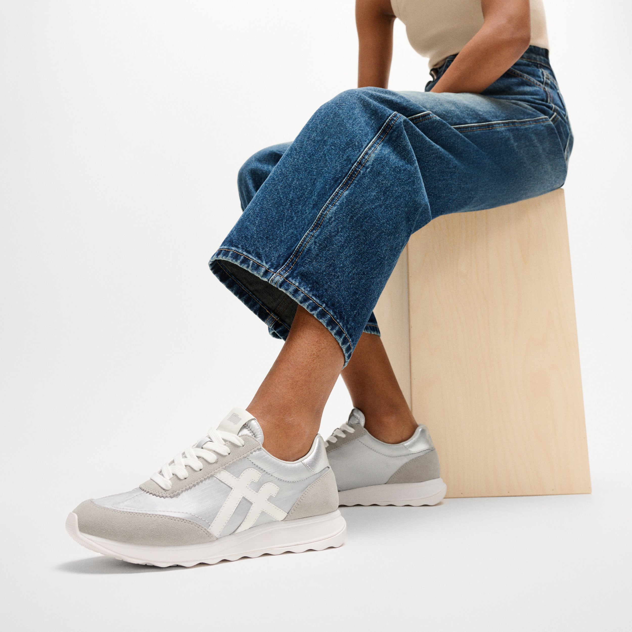 FLOWシークイン スエード/レザーフラットフォーム スニーカー
