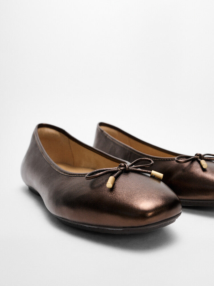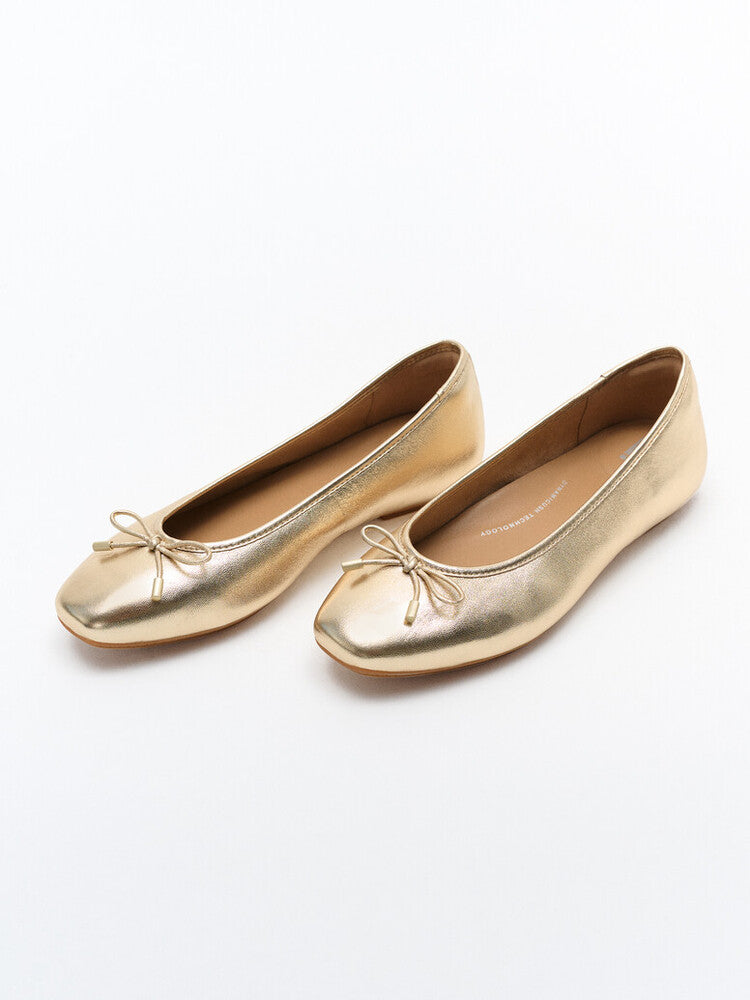 DELICATO BOW SOFTメタリック-レザーバレエフラッツ