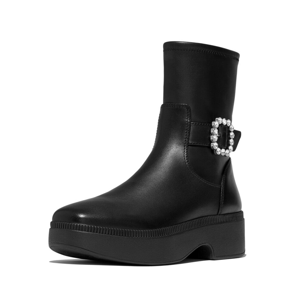 F-LUMA CRYSTAL-BUCKLE レザー ショートブーツ