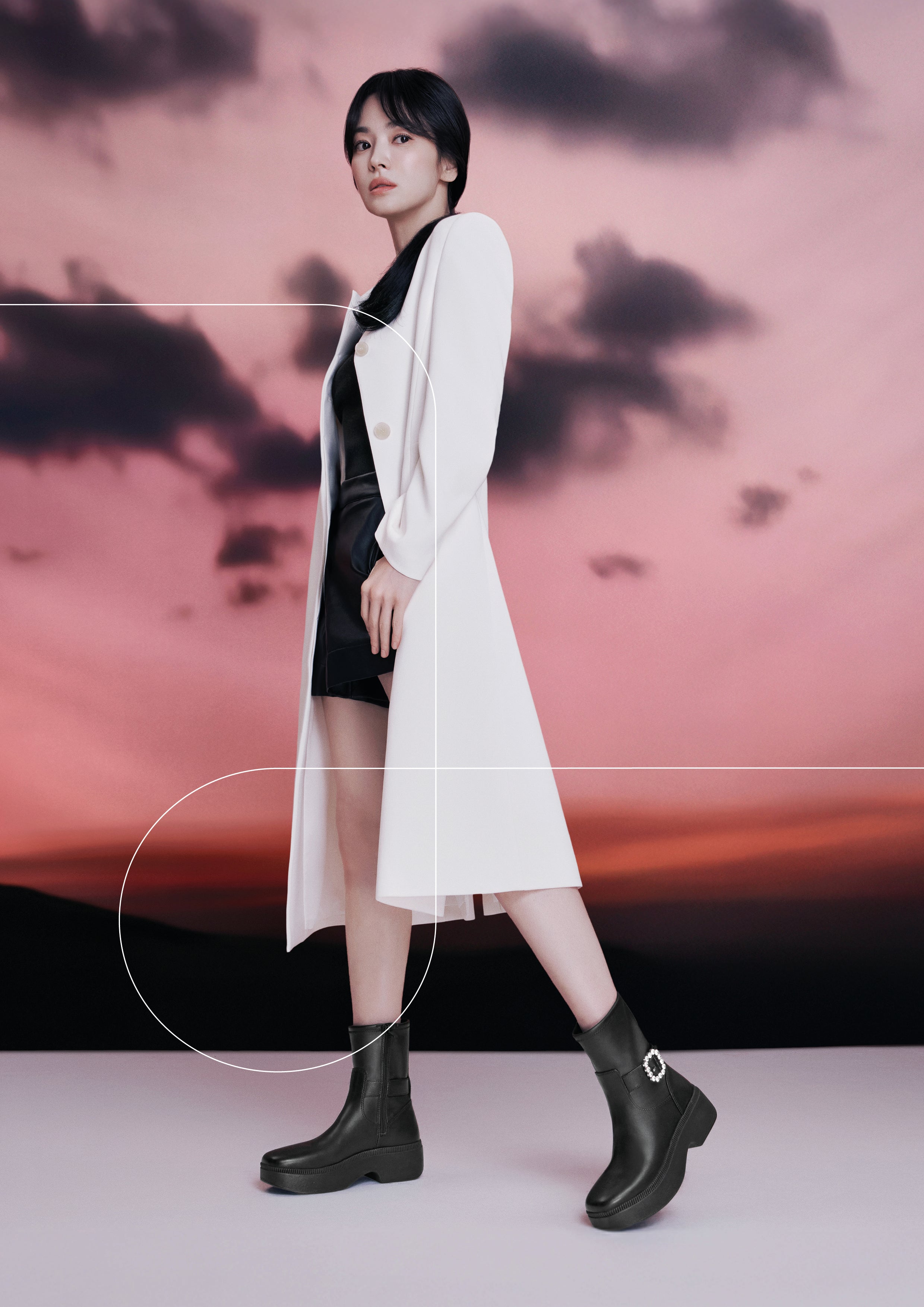 存在感のあるビジューバックルが目を引く、クールで上品な厚底ブーツ✨