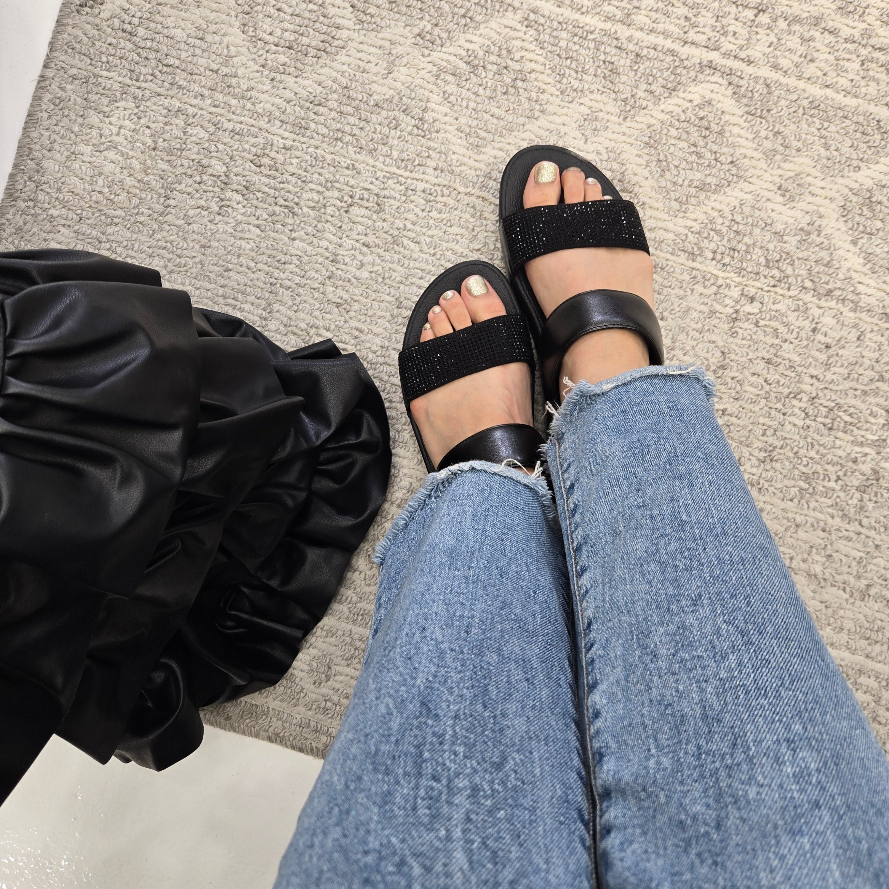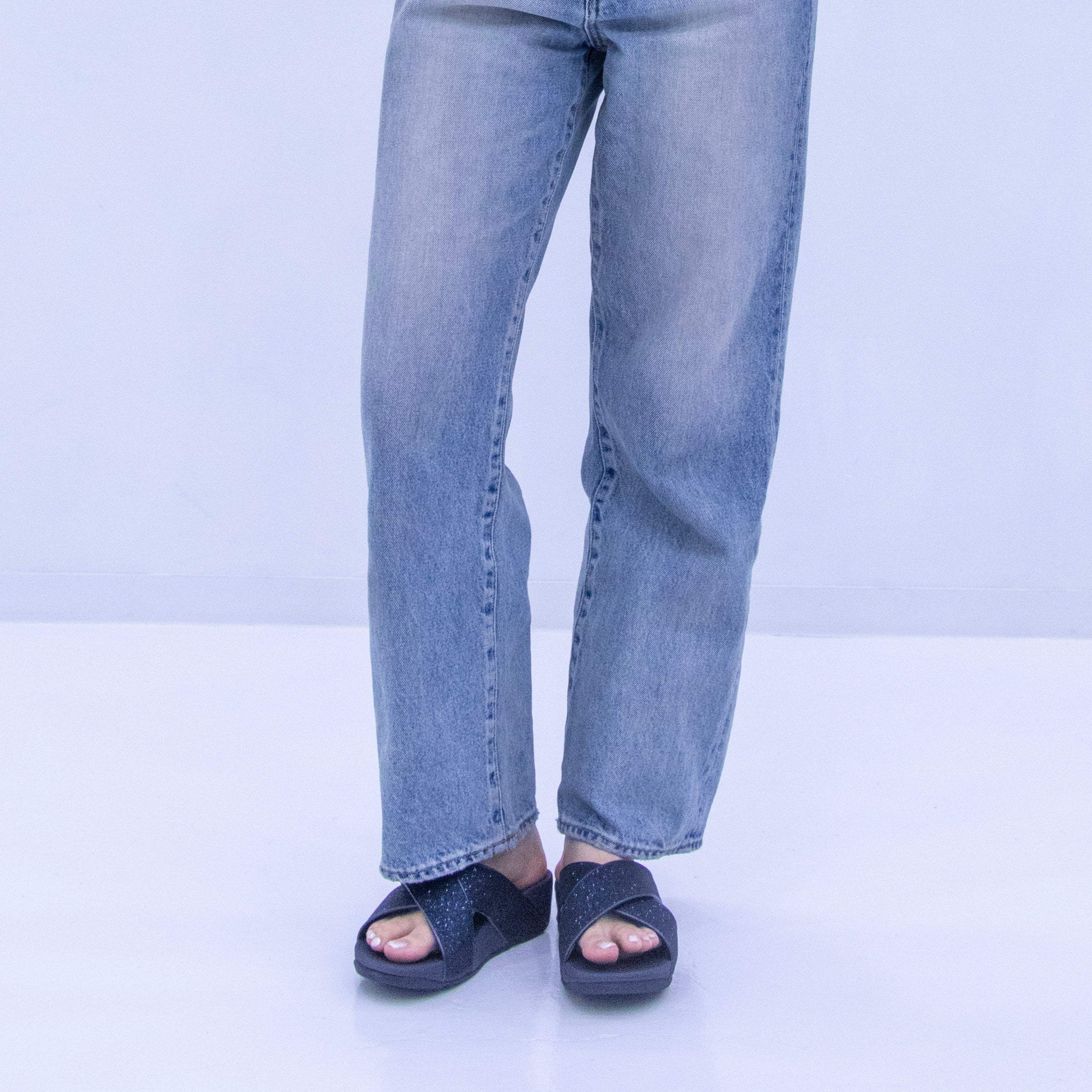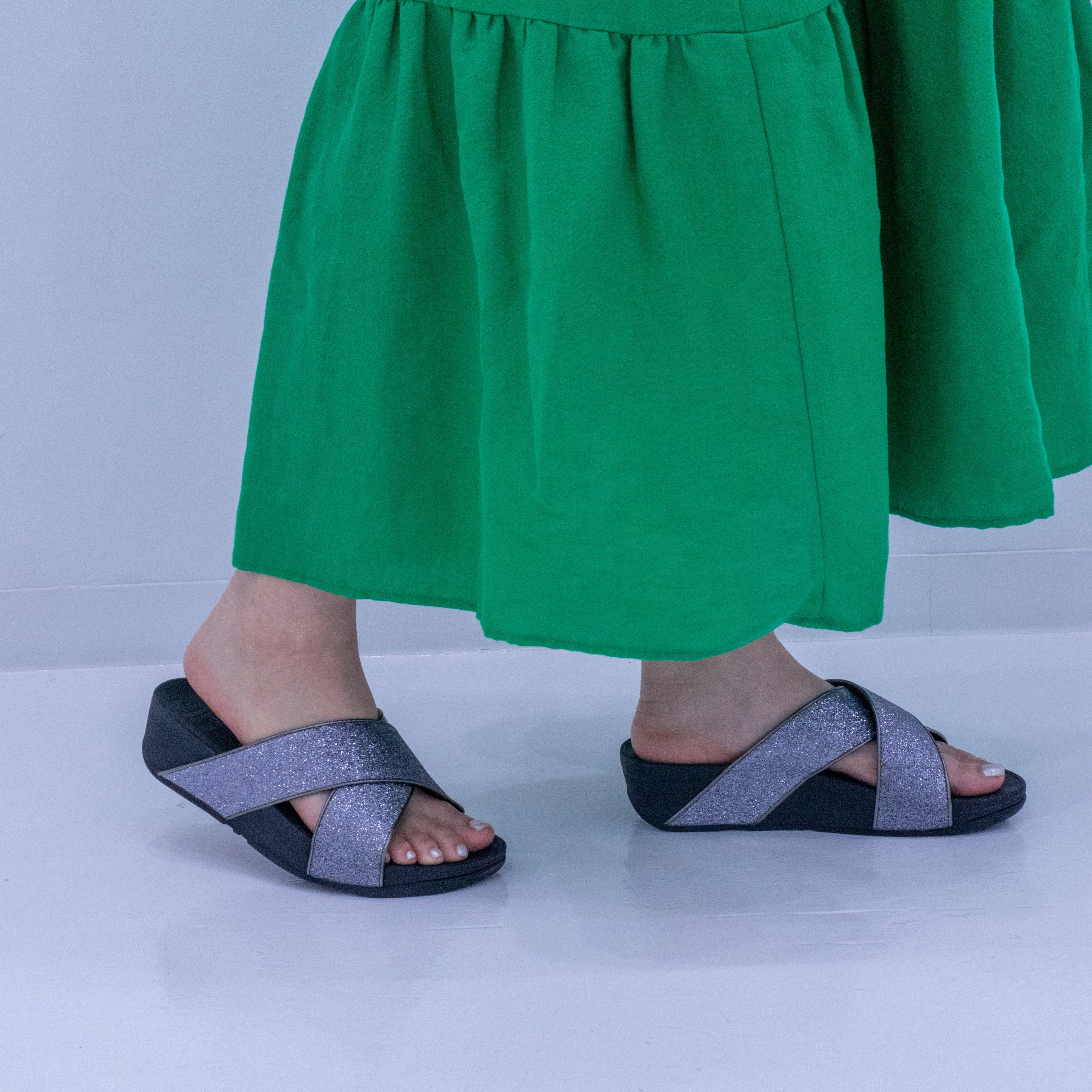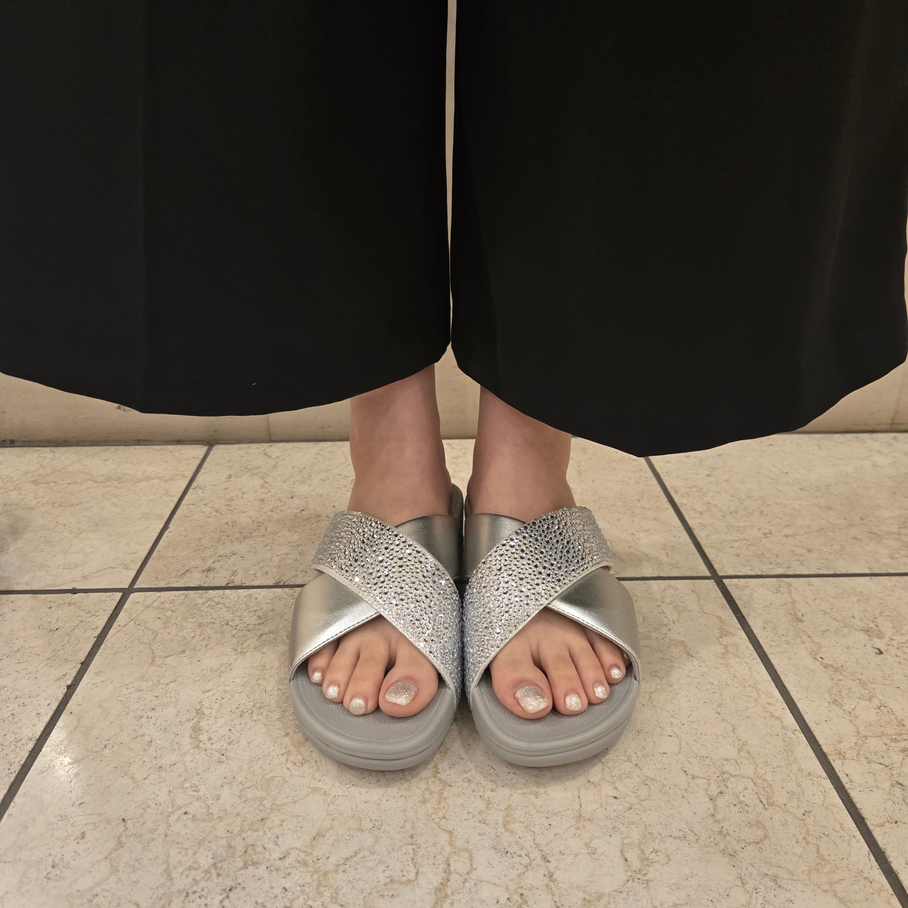 F-MODE バックル シマーラックス フラットフォーム バックル サンダル