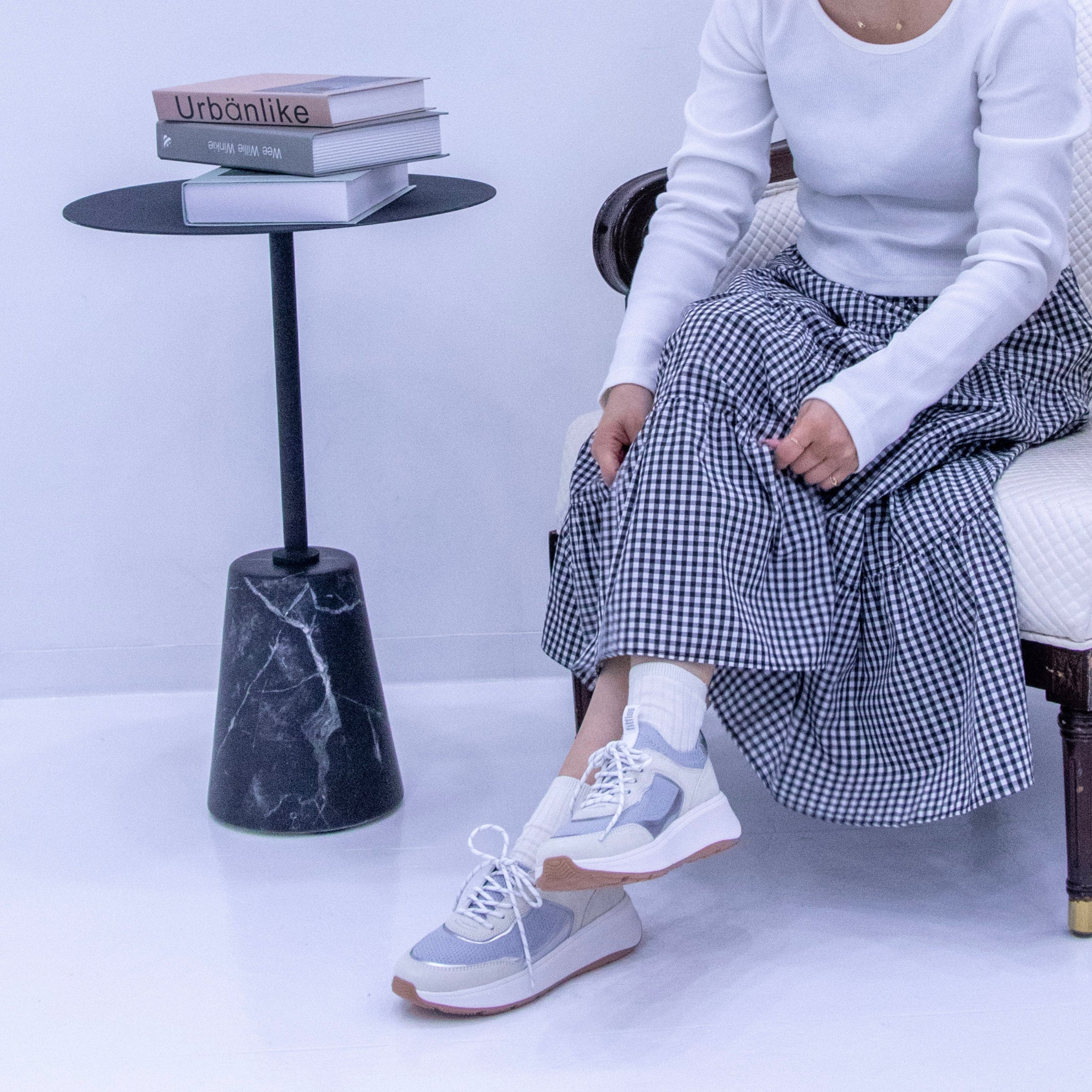 程よいボリューム感のあるソールと洗練されたデザインが、大人の足元に抜け感をプラス。トレンド感と履きやすさを兼ね備えた一足です。