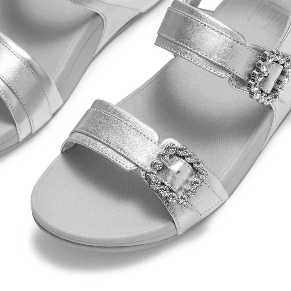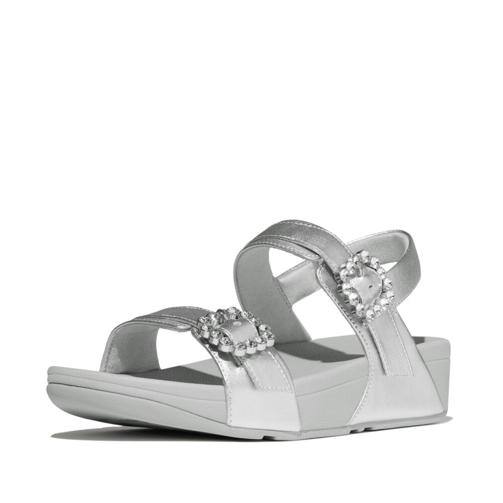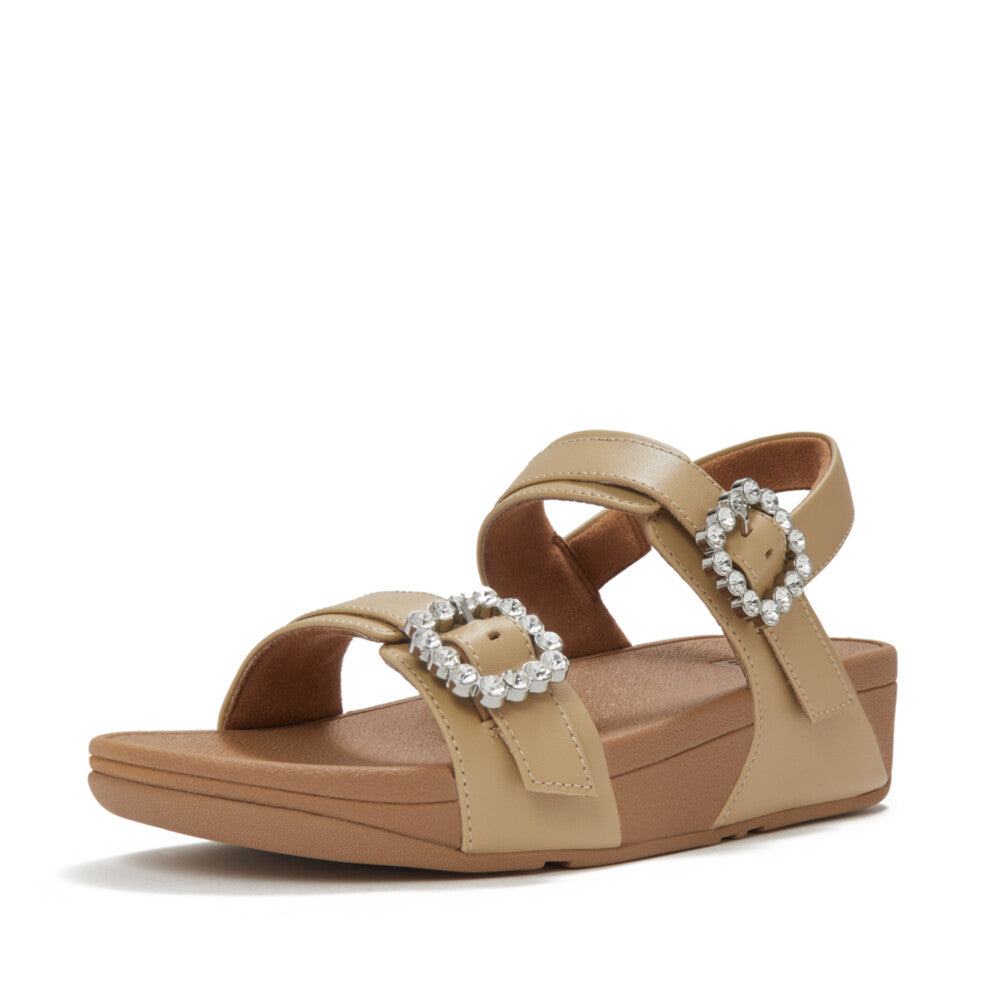 LULU クリスタルバックル レザー バックストラップ サンダル
