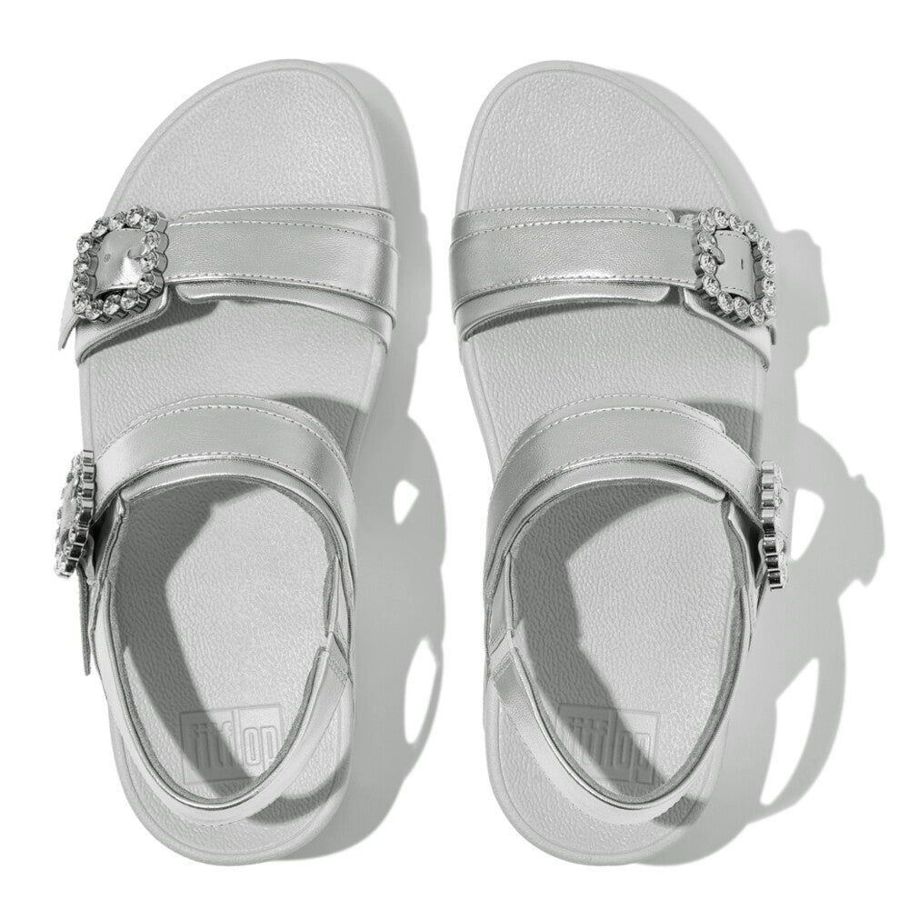 滑らかなレザーを使用し、調節可能なバックルには光沢のあるシルバーときらめくクリスタルで程よい華やかさを演出します!