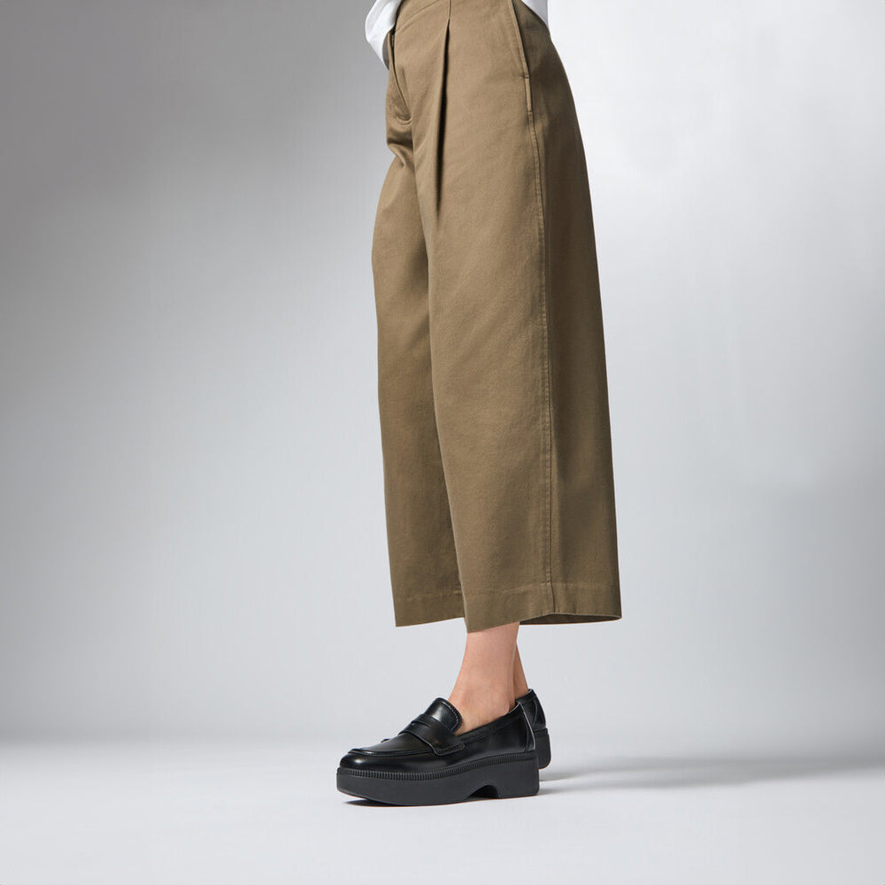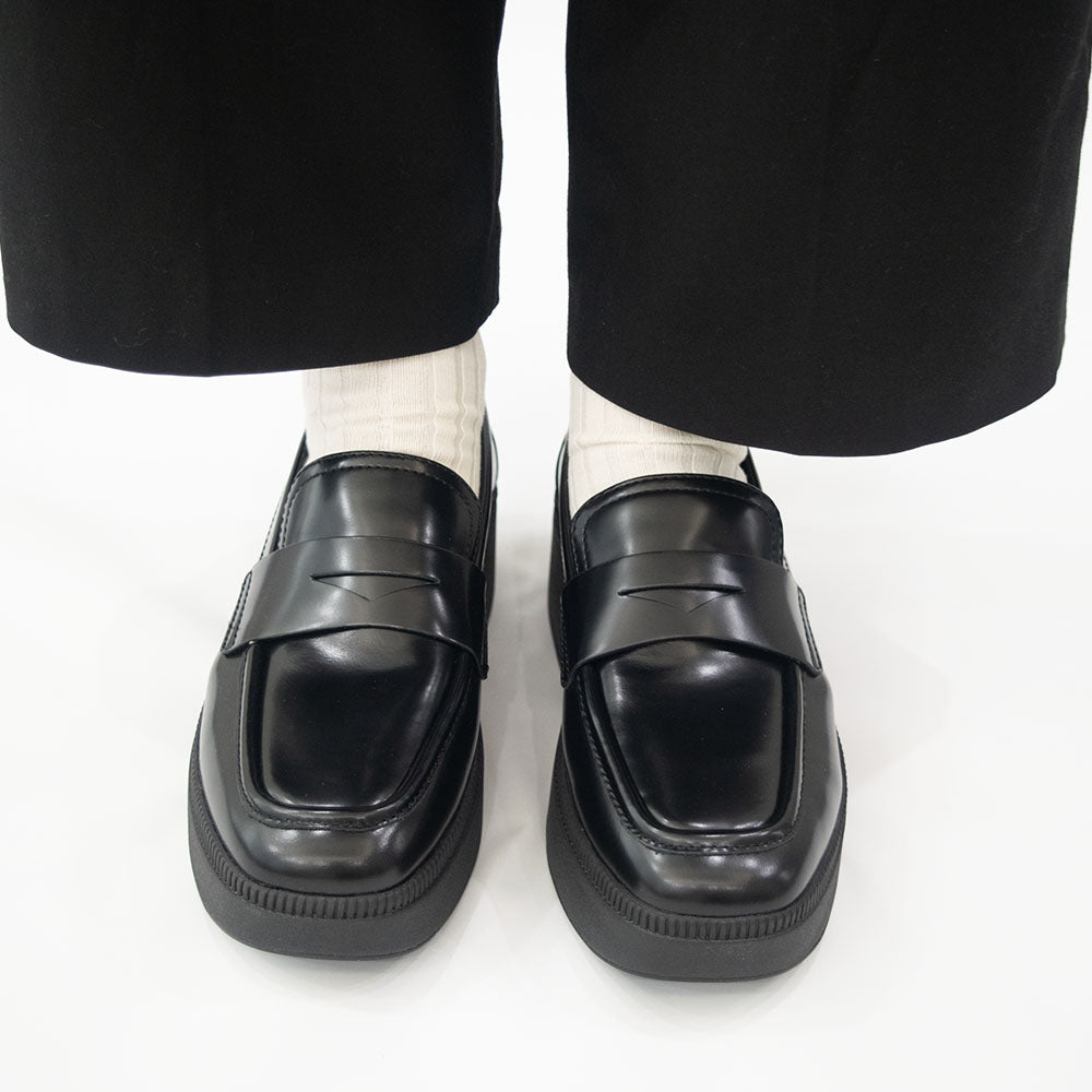 カジュアルにもきれいめにも合わせやすく、オンオフ問わず活躍する一足。洗練された足元を叶える、大人のための厚底ローファーです。