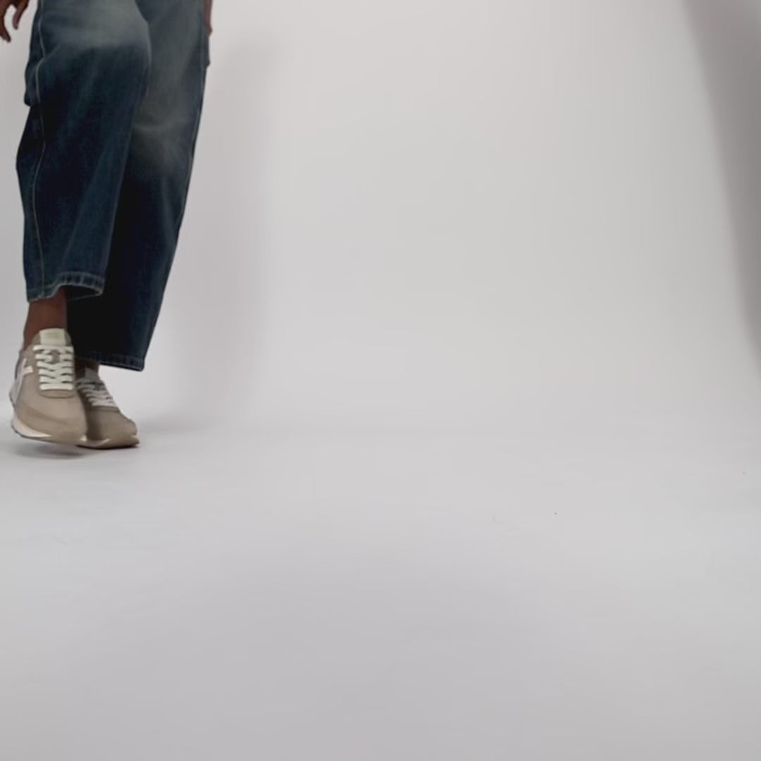 70年代・80年代のオールドスクールスニーカーをモデルに、ファブリックとスエードを組み合わせたミックス構造で、ヴィンテージスタイルのシルエットと豊かな質感のコントラストを生み出しています。