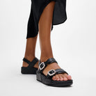 クラシックなラインと柔らかなパッド入りアッパーが特徴の2バーサンダル。