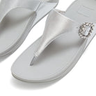 LULU クリスタルバックル レザー トゥポスト サンダル