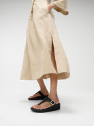 LULUシリーズは、時代を超えた三角形のヴァンプ、柔らかなパッド入りアッパー、そして柔らかなレザーのトゥポストが特徴です。